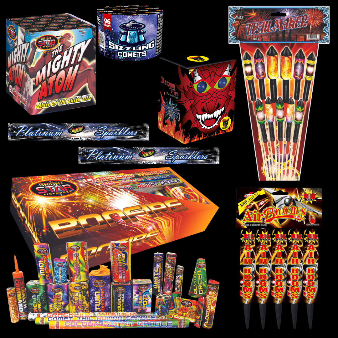 This deal has it all; rockets, cake, fountains, roman candles, sparklers and a selection box with 22 pieces to bring a variety to your event. This is suitable for all ages. We recommend this for all firework crazy families in and around Milton Keynes.