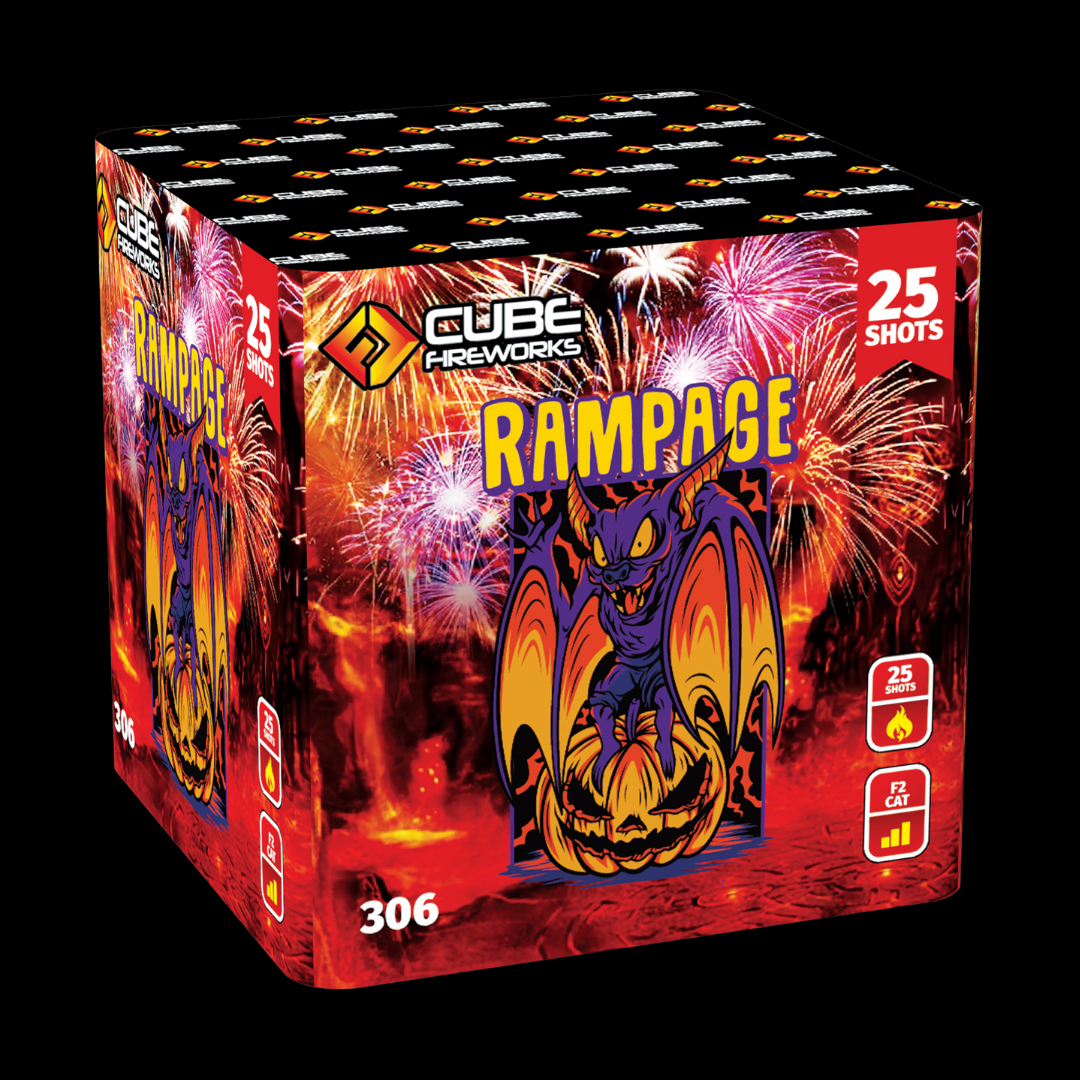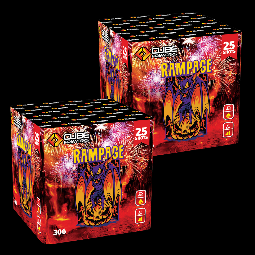 Rampage is a fantastic 25 shot cake by Cube Fireworks. This will blow your socks off! With both fanned and straight firing shots, along with really high quality effects, this new barrage is a must-have and incredible value for money!
